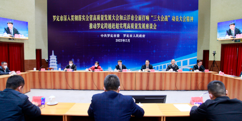 会议还通报了2022年全市经济社会发展情况和2023年项目建设目标任务及一季度集中动工签约项目情况,相关镇(街)和市直相关单位主要负责同志、企业家代表等围绕推动罗定高质量发展分别作了发言。