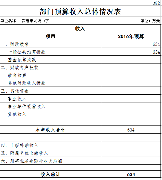 2016年本部门收入预算634万元,比上年增加45万元,增长7.64%,主要原因是上级对人员工资增长部分的拨款;支出预算634万元,比上年增加40万元,增长7.64%,主要原因是人员的工资增长。