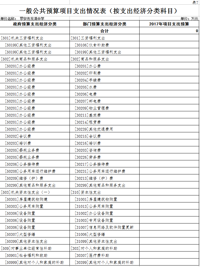 七、一般公共预算项目支出情况表(按支出经济分类科目)
