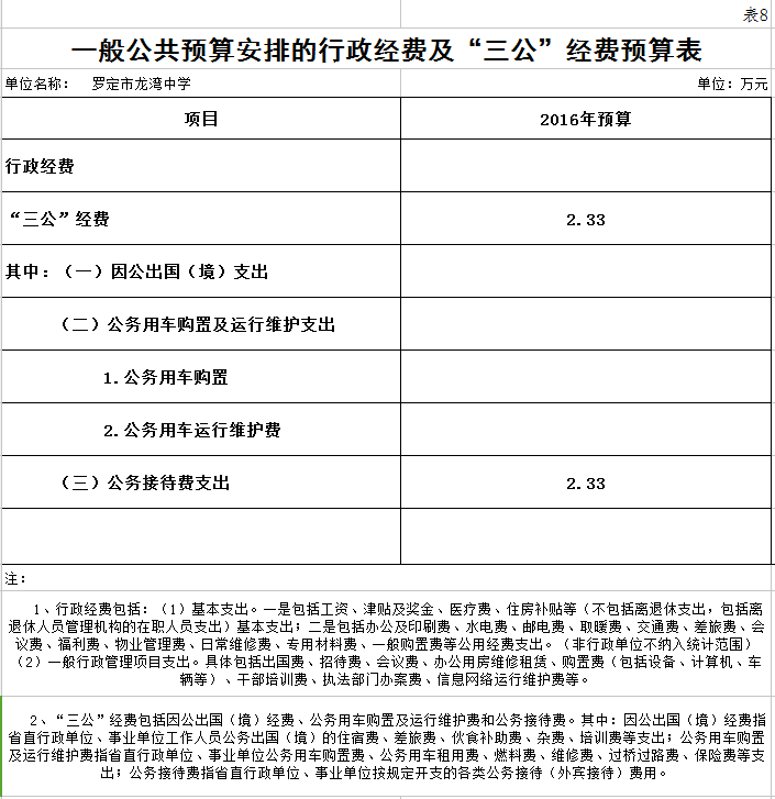 八、 一般公共预算安排的行政经费及“三公”经费预算表