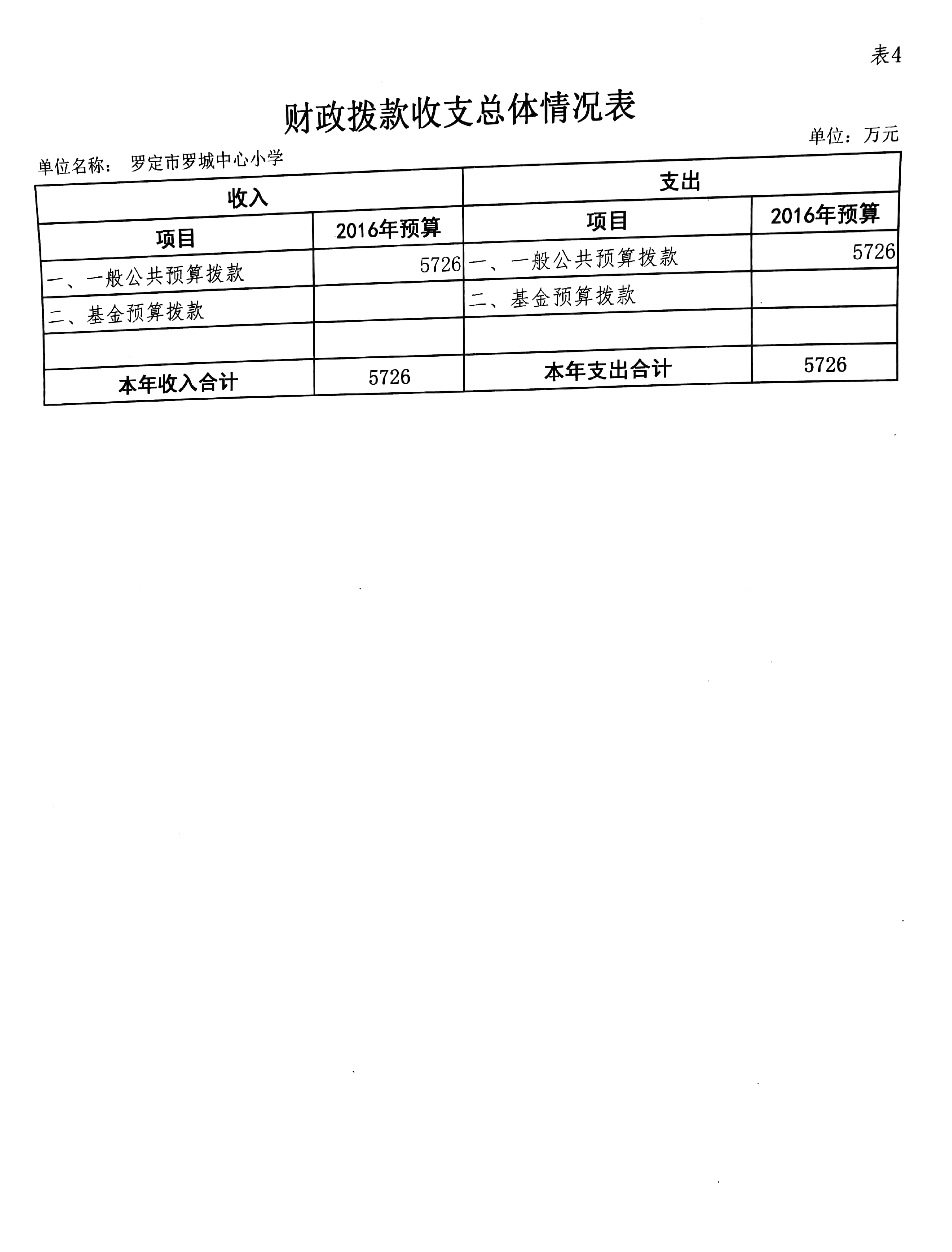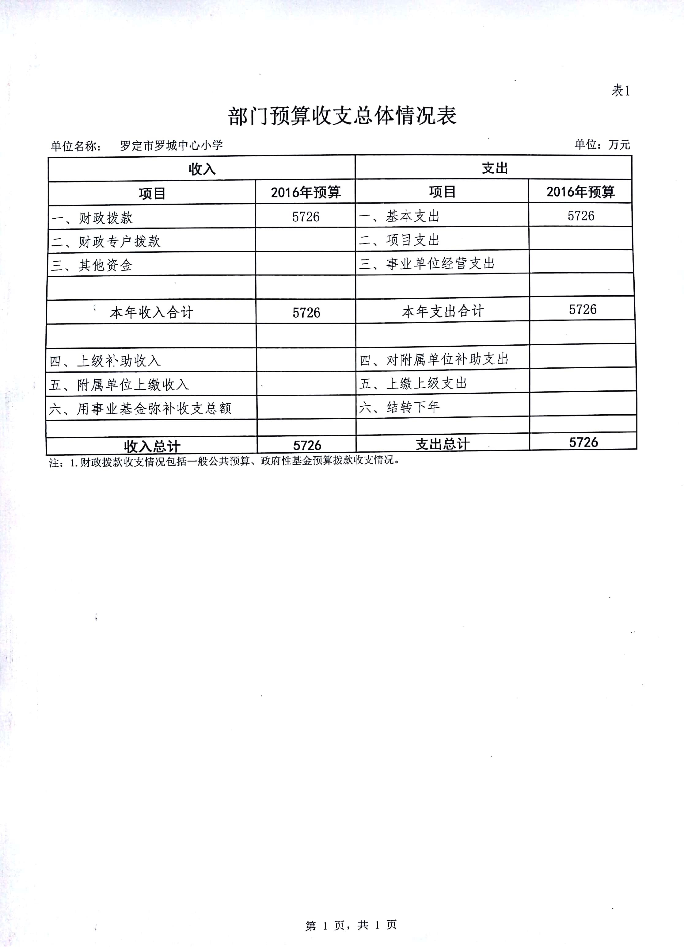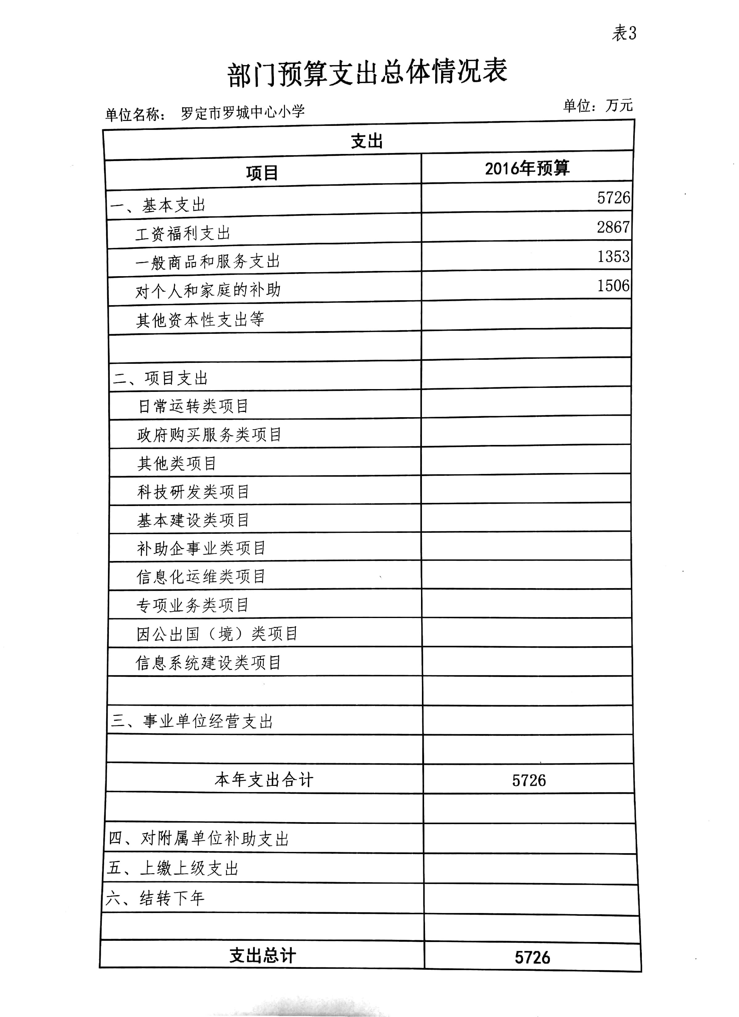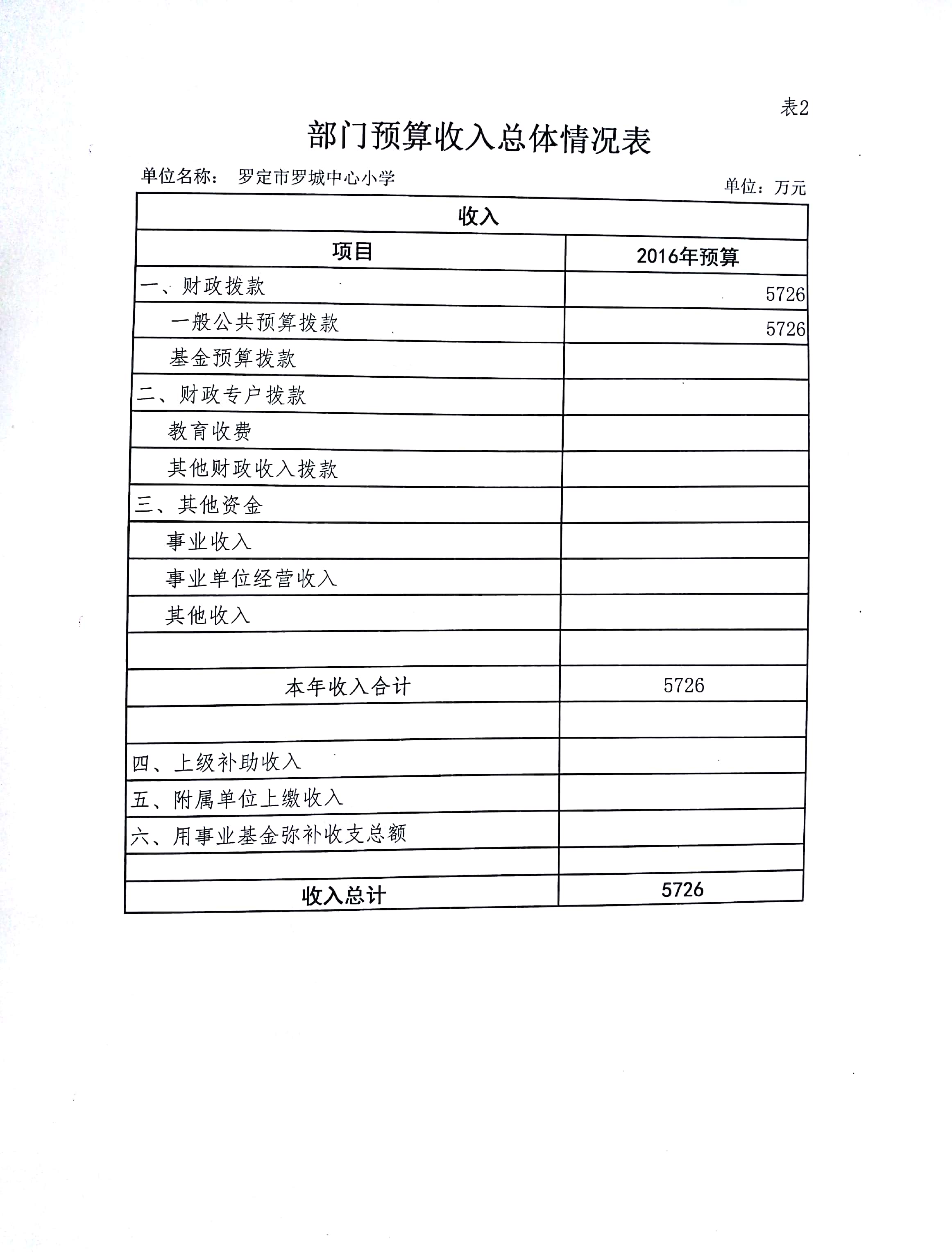 2018年罗定市罗城中心小学财政拨款收支总预算 5726万元。收入全部为一般公共预算拨款,无政府性基金预算拨款,包括:一般公共预算当年拨款收入5726万元、上年结转0万元;支出包括:一般公共服务支出0万元、外交支出0万元、教育支出4220万元、科学技术支出 0万元、文化体育与传媒支出0万元、社会保障和就业支出1506万元、农林水支出0万元、住房保障支出0万元、结转下年0万元。对比上年部门预算收支安排增537万元,主要原因:在职教师工资福利增加、对个人和家庭补助增加、生均公用经费增加。