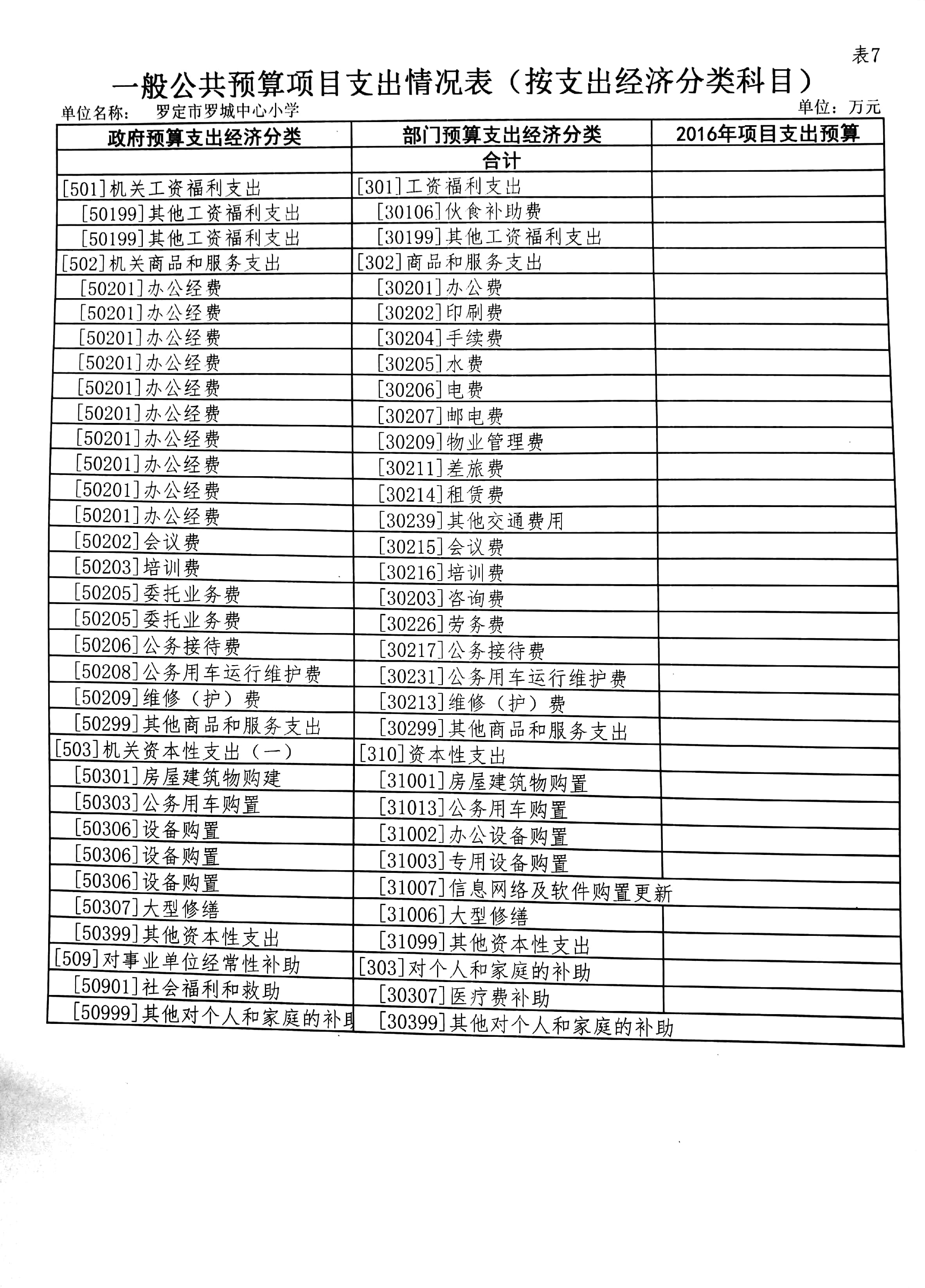 七、 一般公共预算项目支出情况表(按支出经济分类科目)