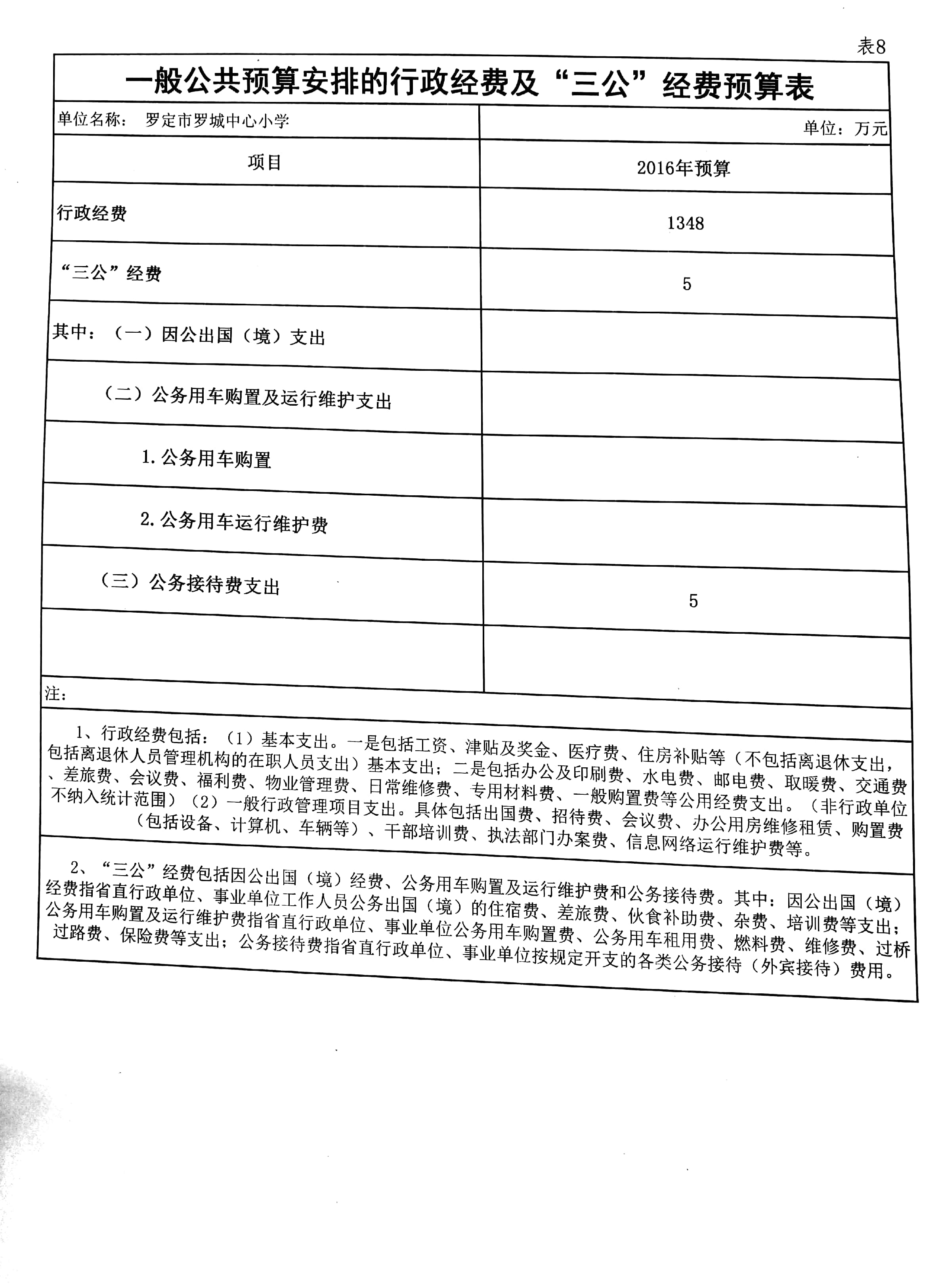2018年罗定市罗城中心小学“三公”经费预算数为5万元,其中:因公出国(境)费0万元,公务用车交通费0万元,公务接待费5万元。2016年“三公”经费预算与上年对比持平。