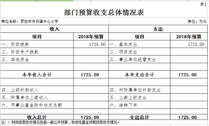 2018年罗定市华石镇中心小学部门预算