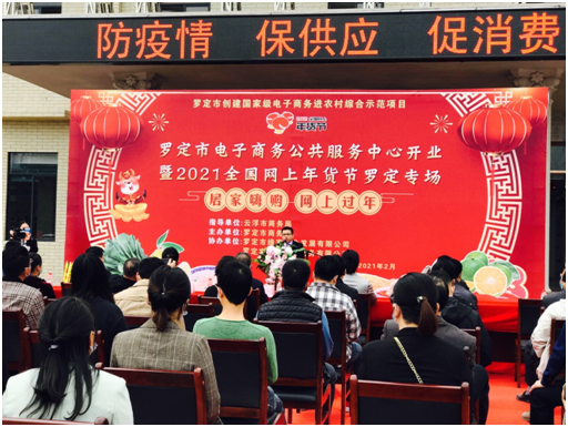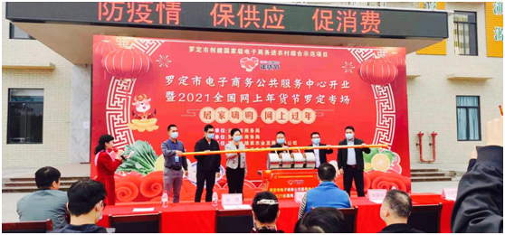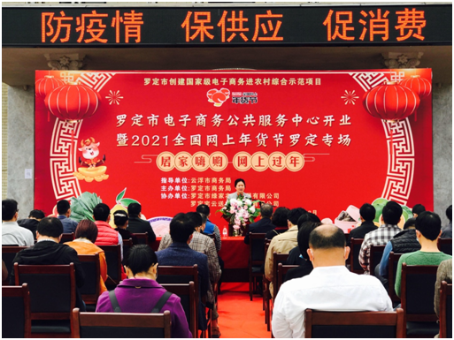 2021年2月8日,罗定市电子商务公共服务中心开业暨2021全国网上年货节罗定专场盛会在公服中心隆重举行,本次活动标志着我市创建国家级电子商务进农村工作进入崭新阶段。