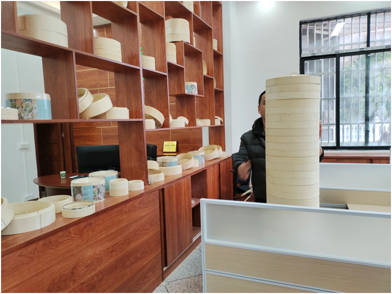 4、到黎少镇罗定市互农竹制品专业合作社调研蒸笼产品。