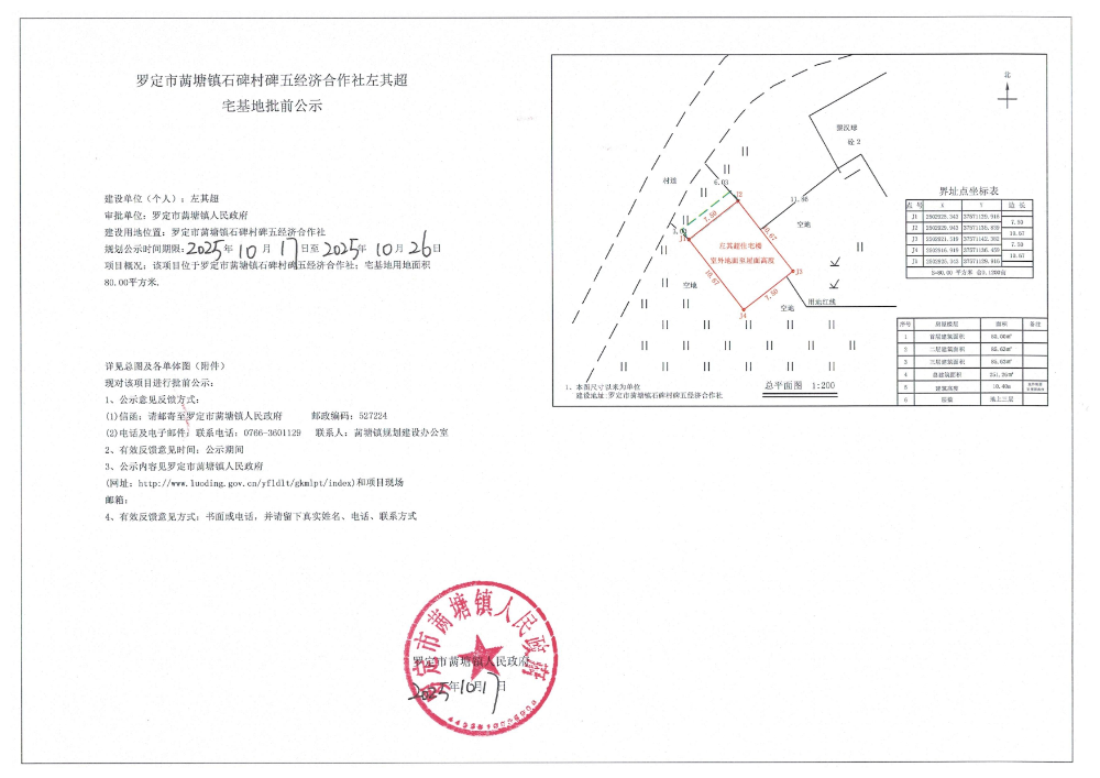 罗定市䓣塘镇石碑村碑五经济合作社左其超宅基地批前公示