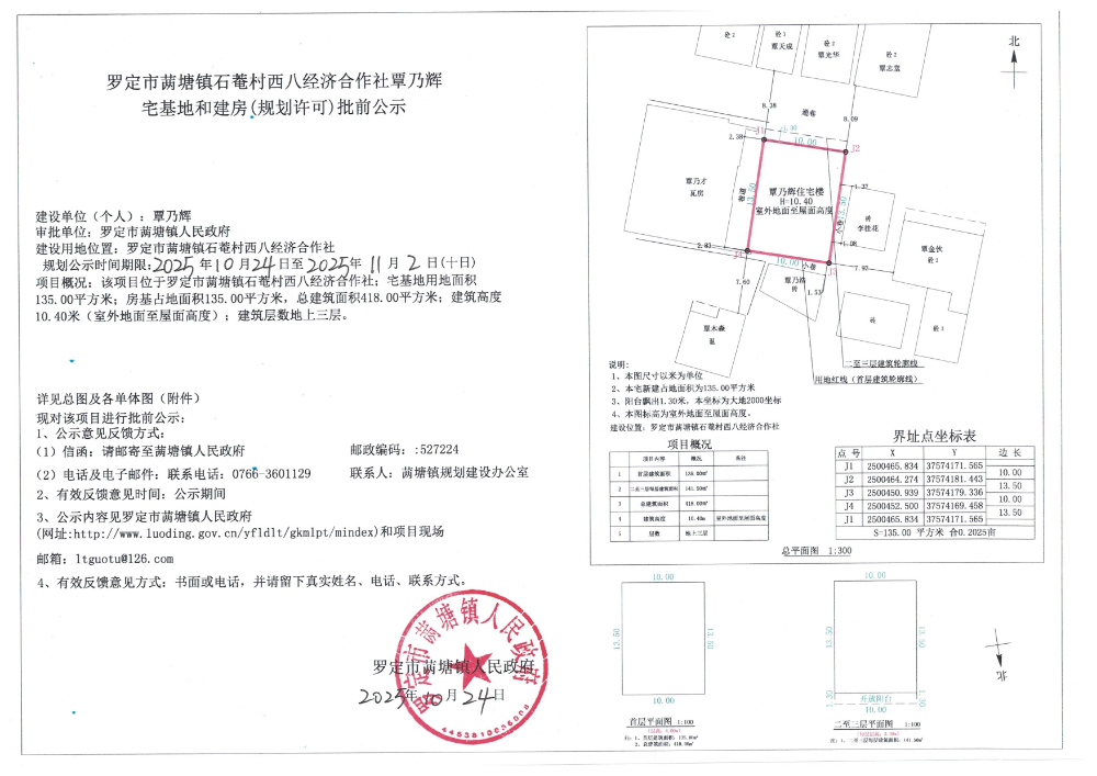 罗定市䓣塘镇石菴村西八经济合作社覃乃辉宅基地和建房(规划许可)批前公示