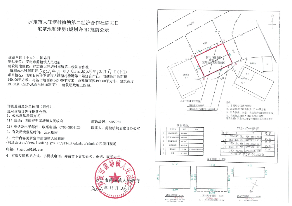 罗定市大旺塘村梅塘第二经济合作社陈志日宅基地和建房(规划许可)批前公示