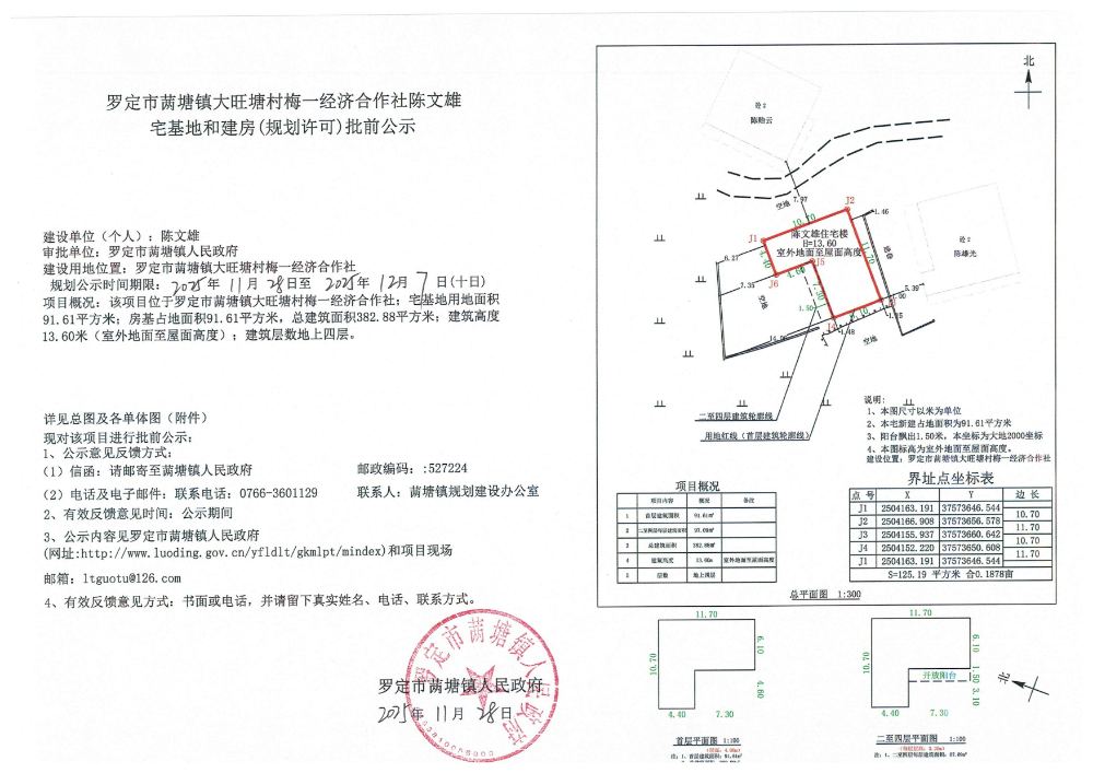 罗定市䓣塘镇大旺塘村梅一经济合作社陈文雄宅基地和建房(规划许可)批前公示