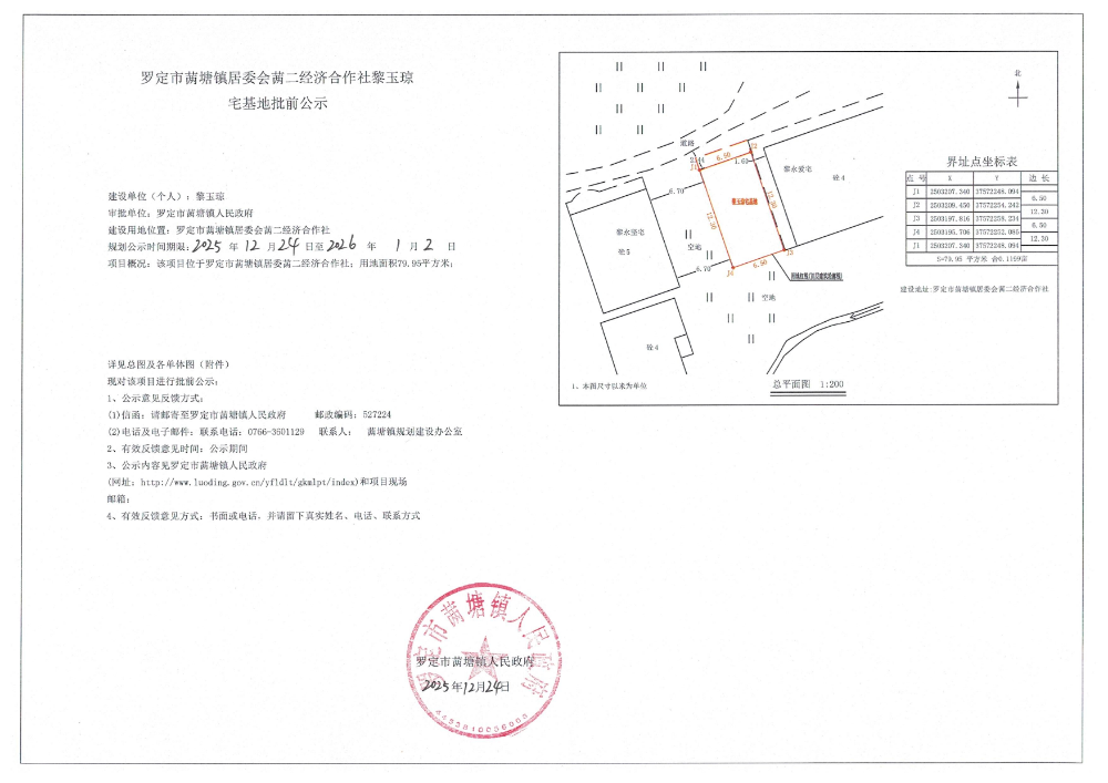 罗定市䓣塘镇居委会䓣二经济合作社黎玉琼宅基地批前公示