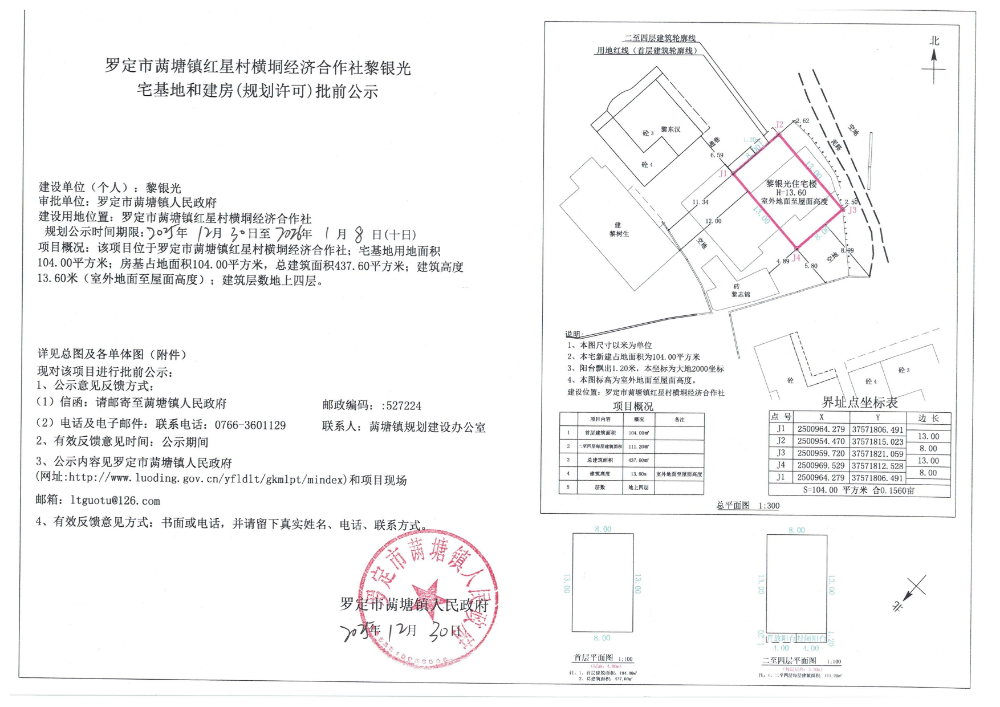 罗定市䓣塘镇红星村横垌经济合作社黎银光宅基地和建房(规划许可)批前公示