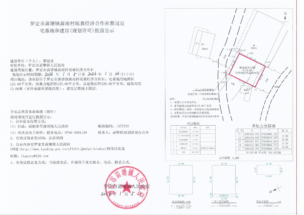 罗定市䓣塘镇䓣南村坭寨经济合作社黎冠良宅基地和建房(规划许可)批前公示
