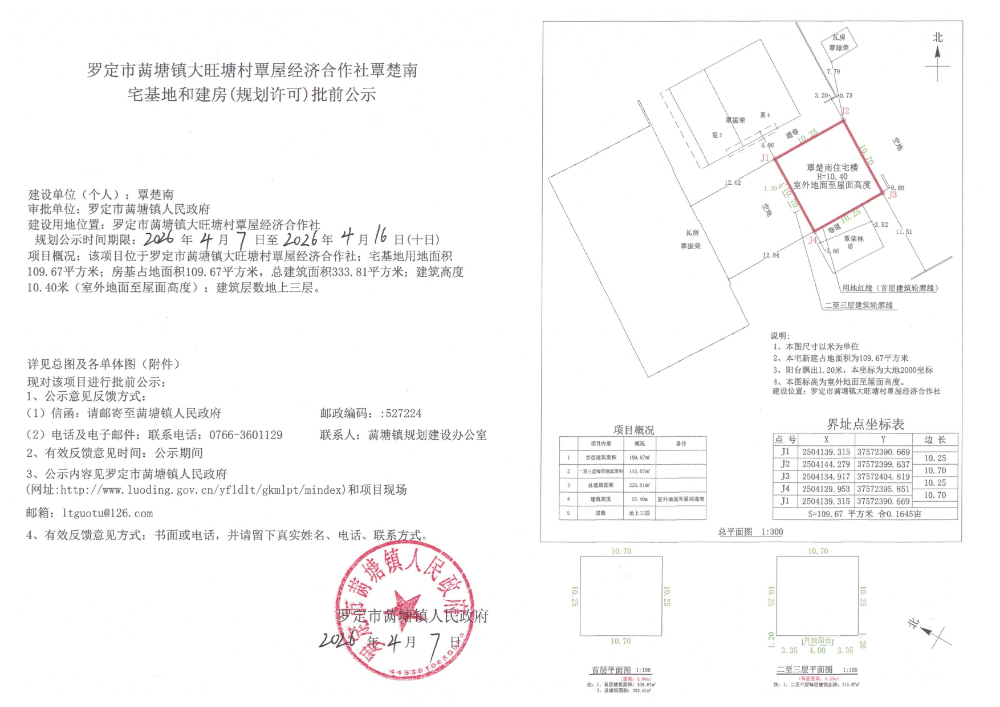 罗定市䓣塘镇大旺塘村覃屋经济合作社覃楚南宅基地和建房(规划许可)批前公示