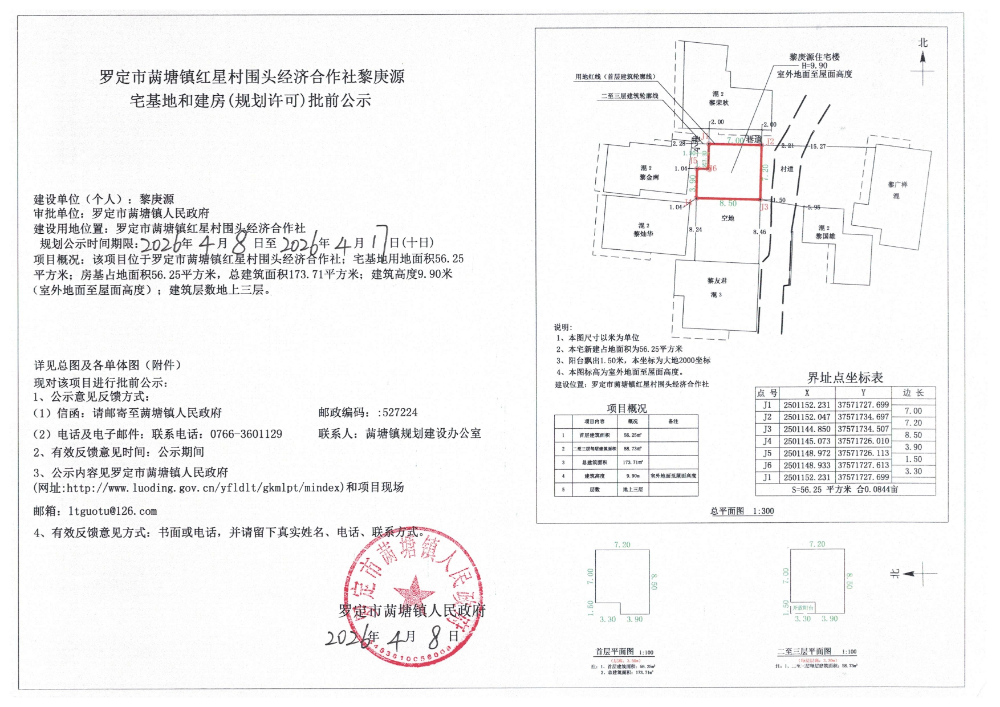 罗定市䓣塘镇红星村围头经济合作社黎庚源宅基地和建房(规划许可)批前公示
