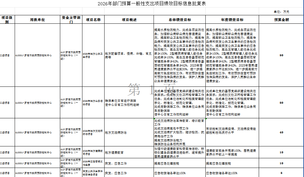 罗定市疾病预防控制中心2026年预算绩效目标公开